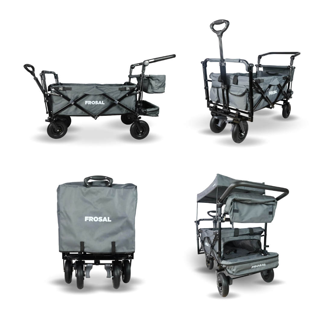 FROSAL Faltbarer Bollerwagen Leo grau mit Luftreifen