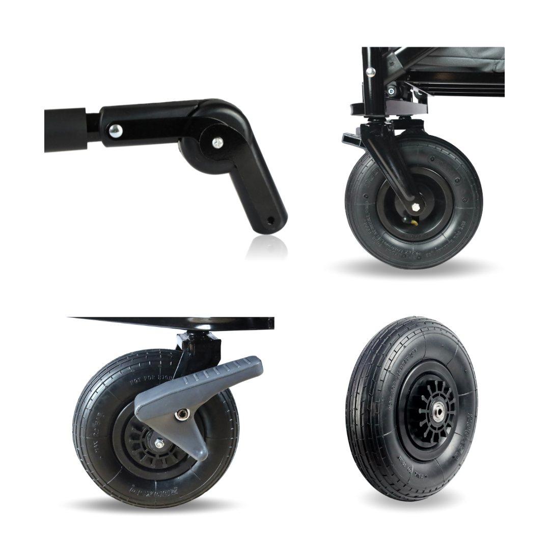 - Reifen: Luftreifen eignen sich besonders für unebenes Gelände, während pannensichere und vollgummi Reifen wartungsfrei sind.