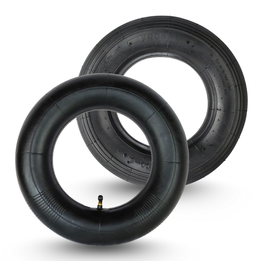 FROSAL Schubkarrenreifen-Set – Mantel 4.80/4.00-8 (4PR) inkl. Schlauch mit 90° Ventil
