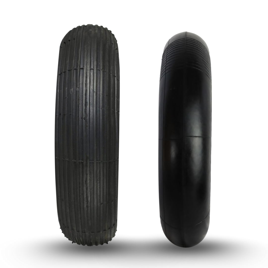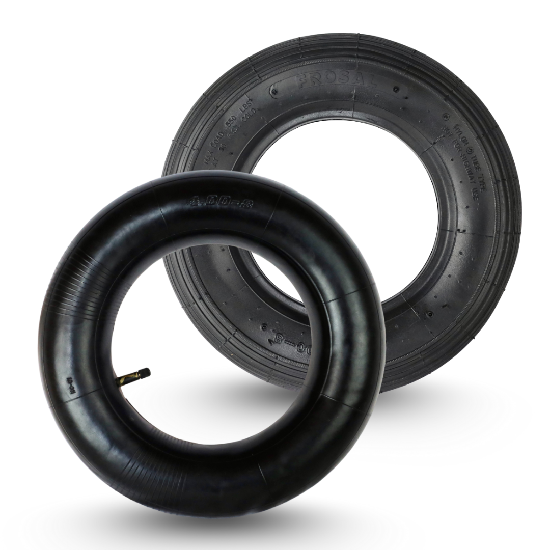 Dieses Komplett-Set besteht aus einem robusten Reifenmantel in der Größe 4.80/4.00-8 (4PR) sowie einem passenden Schlauch mit geradem Ventil.